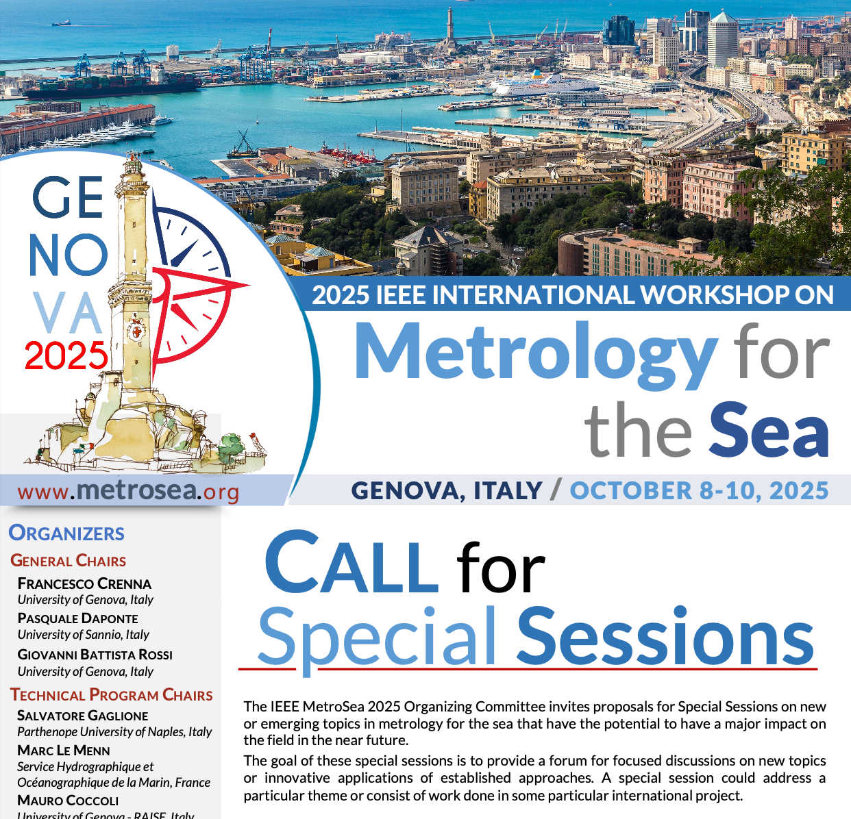 The IEEE MetroSea 2025 Organizing Committee invites proposals for Special Sessions on new or emerging topics in metrology for the sea that have the potential to have a major impact on the field in the near future.